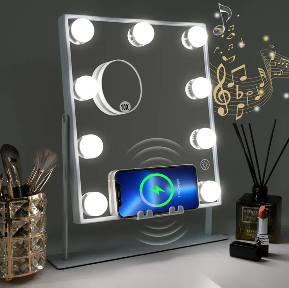 Want to feel like an old Hollywood starlet while applying your makeup? This vanity mirror is the perfect combination of old-school glam and modern updates. Bright lights surround the tabletop mirror for even illumination, and the 360-degree swivel design allows you to position it exactly how you need it. The best part? It includes a wireless charging port and a Bluetooth speaker.