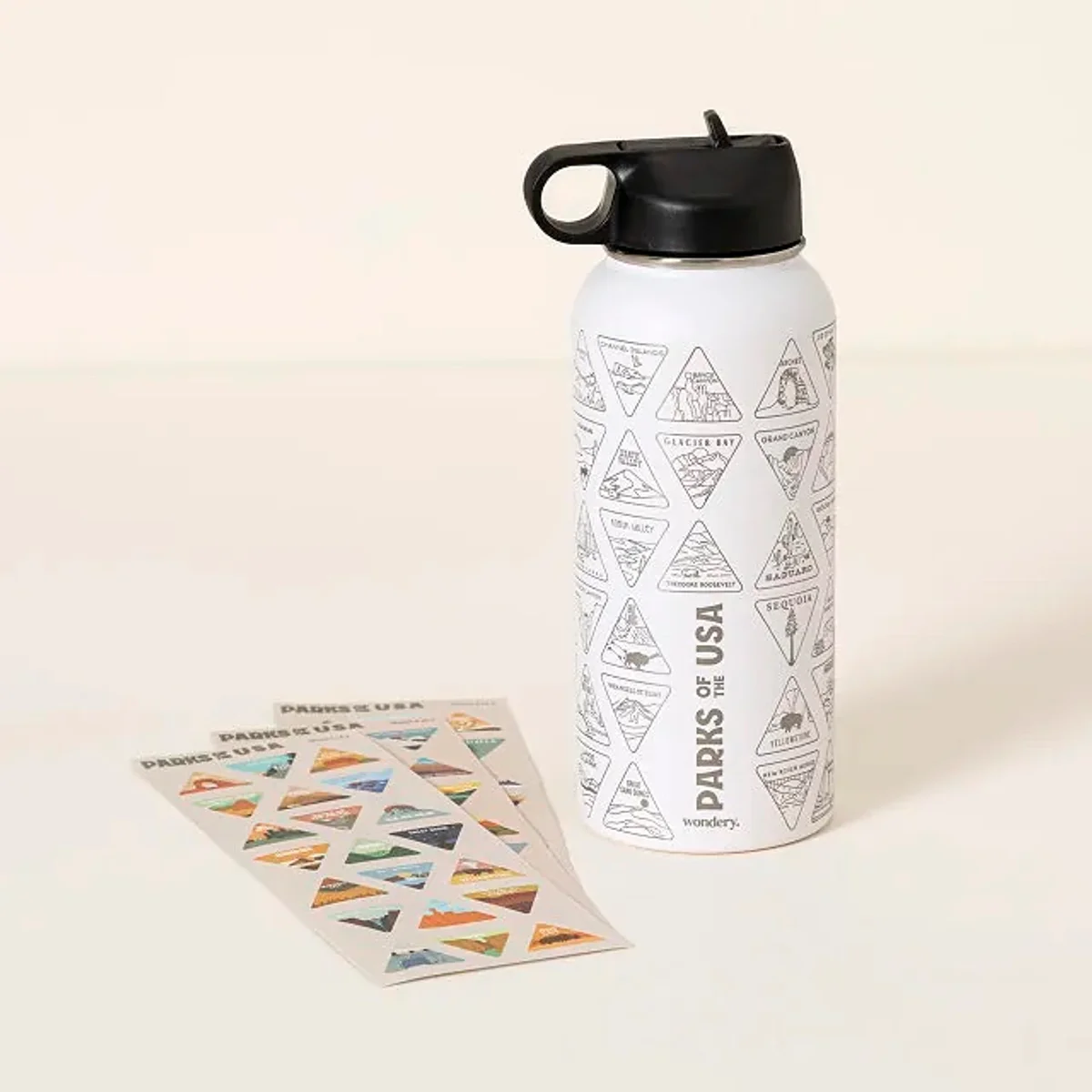 My family and I travel a lot and love visiting the National Parks. We buy stickers for our cargo box to show off where we've been, but I love the idea of having a personal National Parks sticker collection. The bucket list water bottle is the perfect way for moms who travel to display the places they've been with their families. - Kate M-W.
