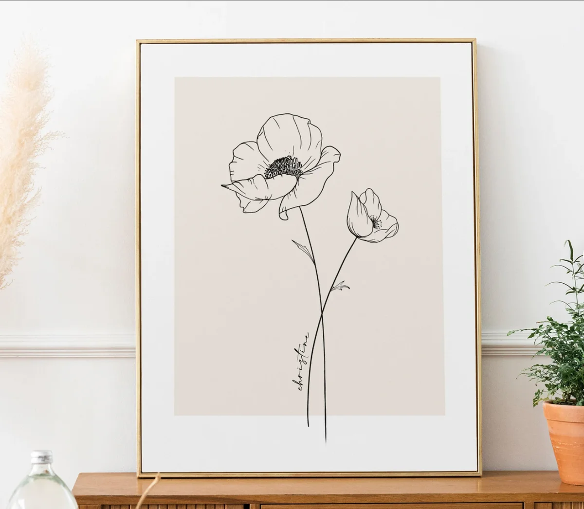These serene line drawing prints from Echo Stellar Studio make a lovely decor gift. Once you've specified their birth month flower, you can choose between three tranquil background colors and add add their name to the design for extra personalization. The print comes on high quality paper with the graphic in the center and a thick white border, which mimics the look of a mat. Plus, included with each purchase is a digital download of the image that can be reprinted over and over again!