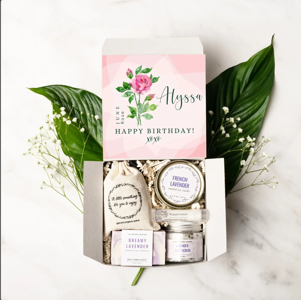 No one can resist a box full of pampering goodies. Eryn's Home and Gifts has curated boxes guaranteed to sooth, relax, and revive whomever is lucky enough to receive one. Choose between eight boxes, ranging from the petite Letterbox Gift to the Deluxe Lavender parcel. Each one is a treasure trove of handmade soaps, fragrant bath crystals, body scrubs, scented candles, and more! Plus, the card inside is personalized with a pretty graphic of their birth month flower, name, and short message.