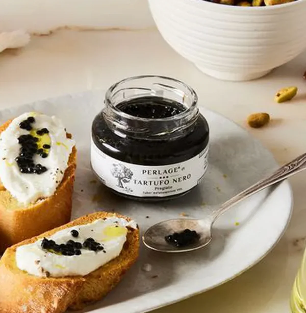 Tartuflanghe's Black Truffle Pearls is a fascinating little condiment. It's black truffle juice treated with sodium alginate - a naturally occurring byproduct of brown algae commonly used in molecular gastronomy. This results in tiny little spheres perfect for topping potatoes, soft-scrambled eggs, blinis, or whatever else might benefit from a truffle's earthy umami flavor. A perfect treat-yourself treat for a foodie.