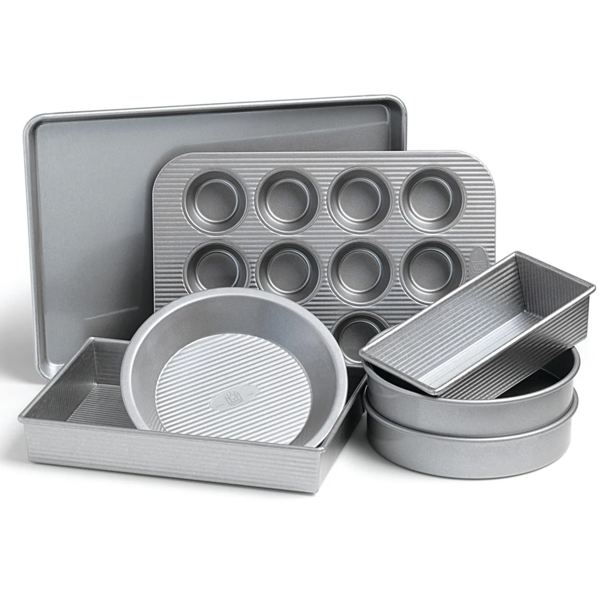 The clue is in the name for this one. King Arthur Baking's Deluxe "Time To Replace Your Pan" Set is made up of seven of a baker's most frequently used pans, all constructed from durable recycled steel and aluminum, and all carrying a limited lifetime guarantee. The set includes a loaf pan, two round cake pans, a muffin tin, a rectangular cake and brownie pan, a pie tin, and a half sheet. Everything your oven has been waiting for!