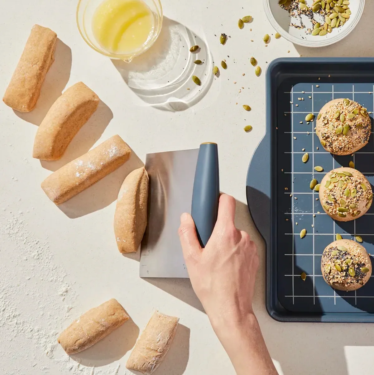 A bench scraper is the kind of utensil that you don't know you've always needed until you buy one. The flat edge is ideal for scraping cutting boards clear of mess and scooping ingredients into a pan or bowl. This one has a 6-inch measurement guide etched into the blade so the brownies or lemon bars you cut will always be uniform and neat.
