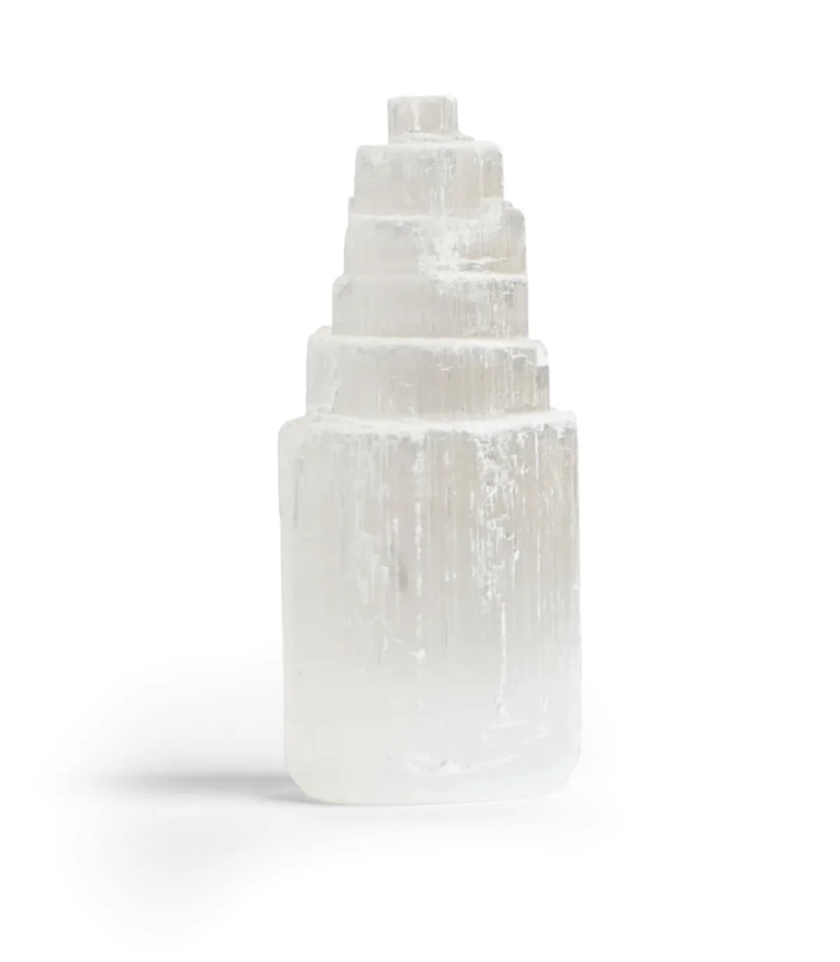 Decorating your tarot space with certain crystals can help to cleanse the vibes and magnify your psychic reception. Having selenite around continuously clears the energy and helps to protect from negative influences. In this pointed tower form, it directs your queries straight into the ether. If using it for intention-setting and manifesting, hold it in your hands while visualizing your desire. In a tarot setting, for example, before you shuffle and read you could hold this selenite tower and visualize a white beam of knowledge and wisdom flooding directly into the top of your head.