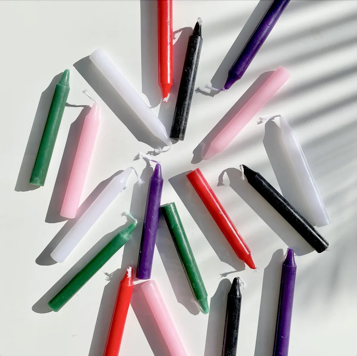 When you read tarot, you're really asking your Guides to speak to you through the cards. One way to invite them in to your ritual area is by lighting a candle. Chime candles are inexpensive and perfectly sized for small spaces like a table top. Each color corresponds to a different subject: you might light a green one when asking money questions, red for love queries, orange for creative inspiration, and so forth. When in doubt, you can't go wrong with white. These ones are unscented and made from paraffin wax with a cotton wick.