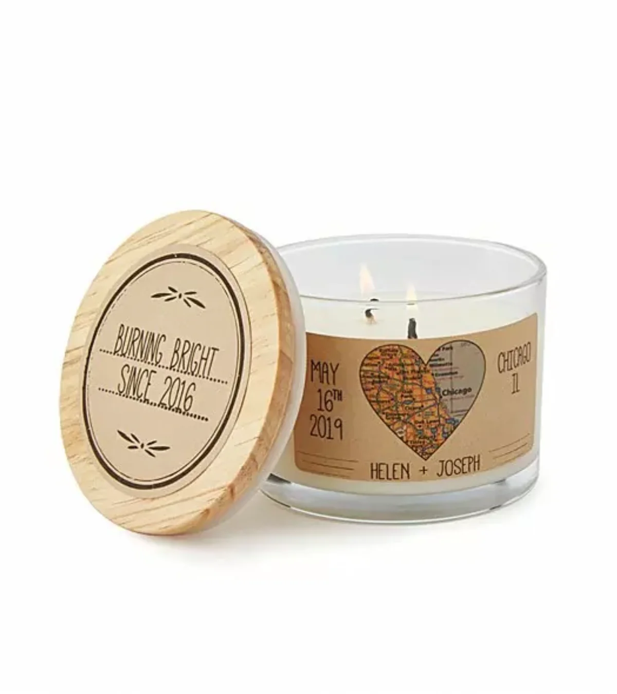 How sweet is this?! Whether you're in a long-distance relationship or living under the same roof, celebrating an anniversary or just want a thoughtful little something for no reason at all, this candle is an adorable romantic gift! Customize with your names and pick the city - where you first met, had your first date, had a memorable day - you can truly make this candle your own!