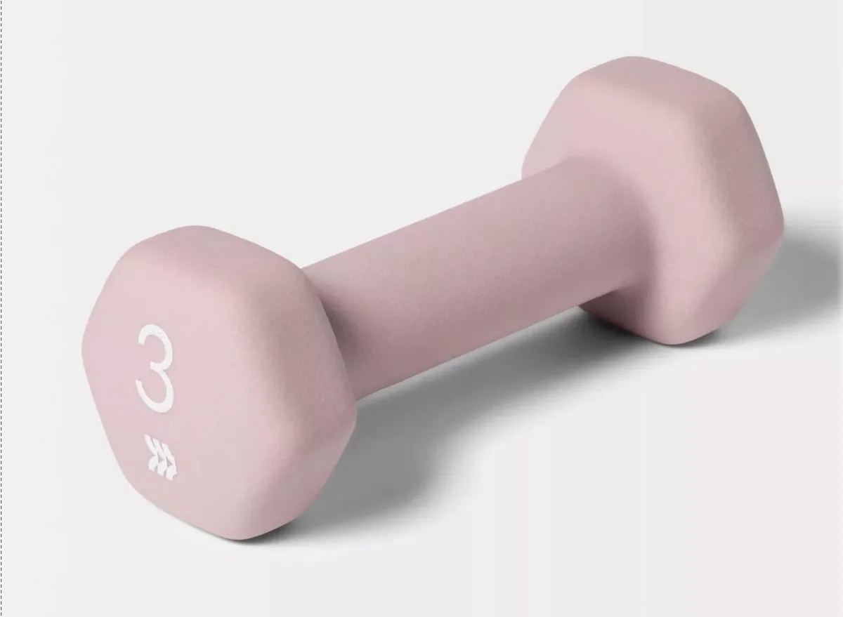Add some light weights to your workout for an extra challenge... just make sure they match your 'fit. These three-pound dumbbells offer just a little bit of resistance to tone and strengthen, but not enough weight to build bulk. The neoprene coating provides grip while the hexagon-shaped head prevents the darn thing from rolling away.