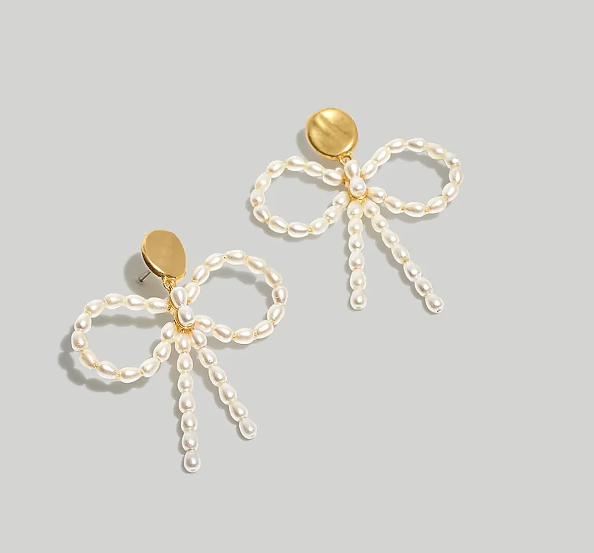 These delicate earrings from Madewell will instantly elevate any outfit. They are gold-plated brass studs dripping with sweet little bows made from a combination of freshwater and acrylic pearls. When making this selection I was inspired by my own favorite childhood doll, Earring Magic Barbie, who taught me the power of accessorizing and that a little glimmer of gold goes a long way.
