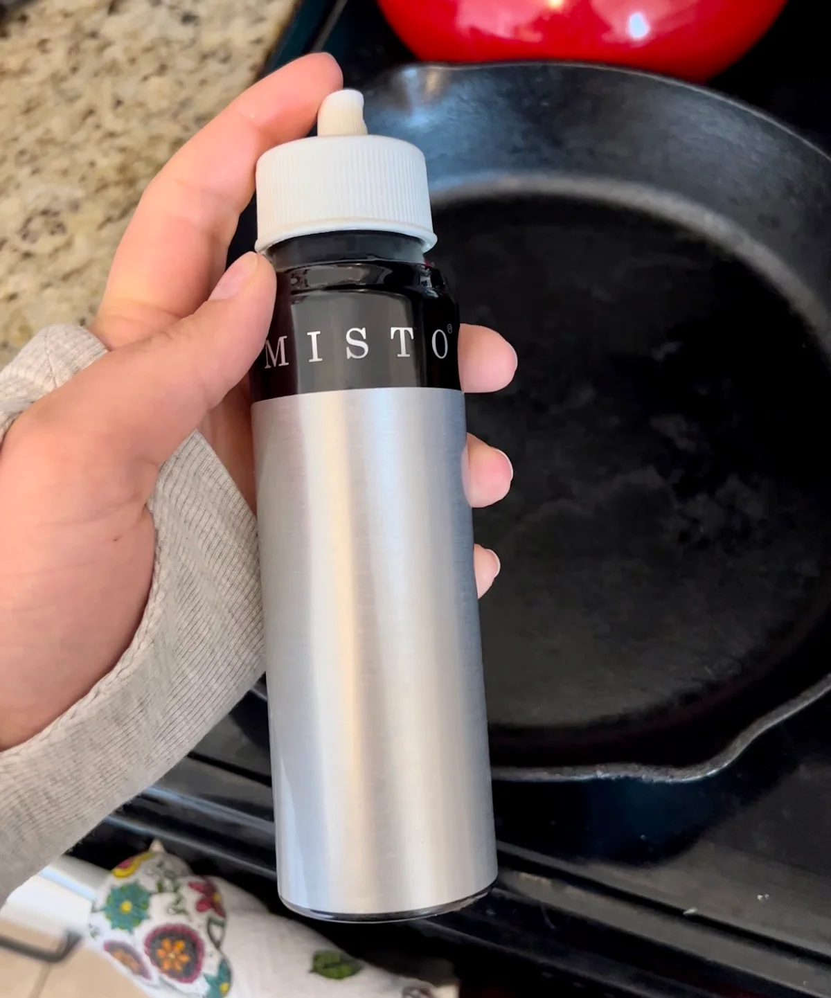 Whether you're a devoted environmentalist trying to avoid single-use aerosol cans or a foodie trying out different oils to cook with, this amazing little spray can is the perfect addition to your kitchen arsenal. I love to put olive oil in mine so that I don't have too heavy a hand with it on the stove top, but I've also used it with almond oil for baking!