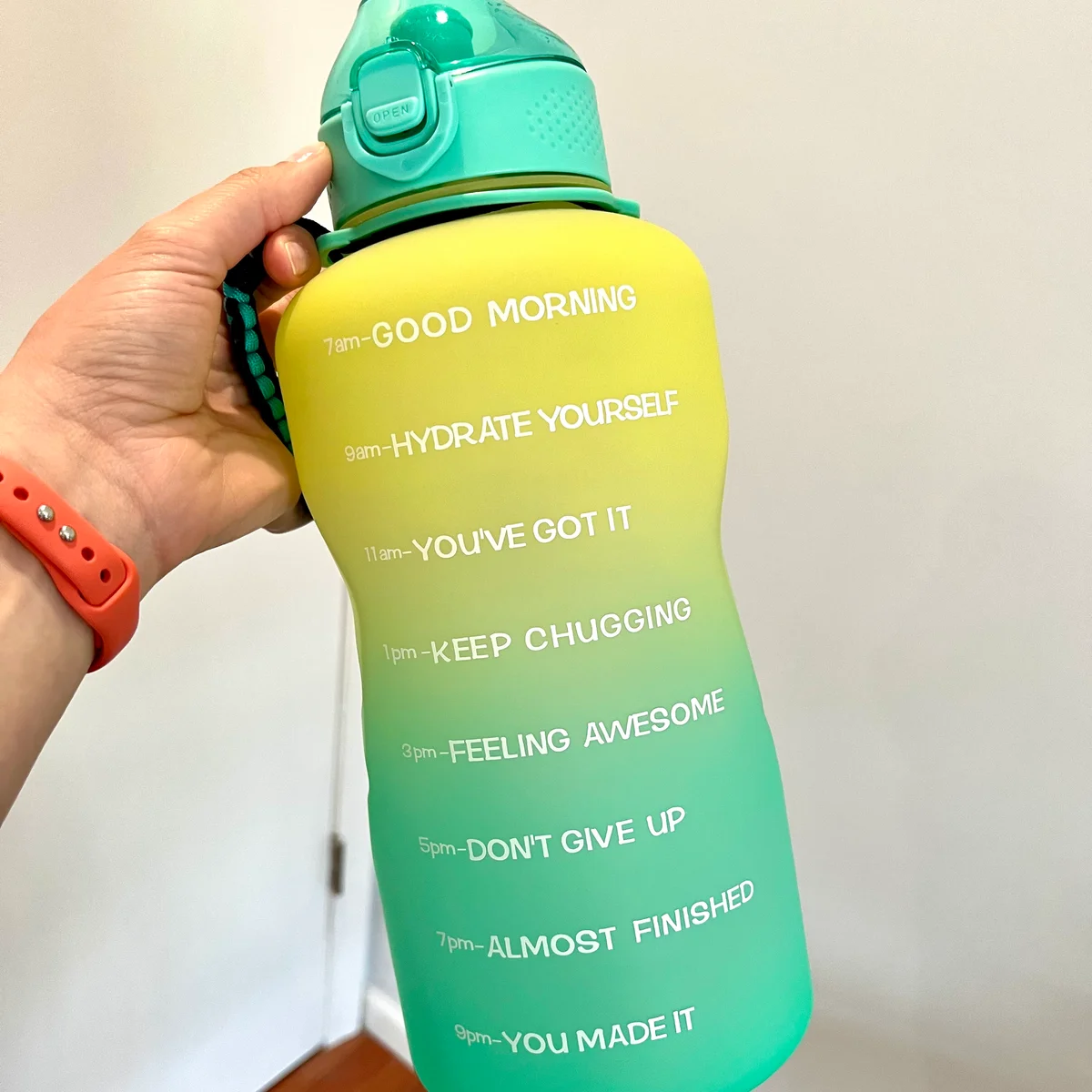 I saw enough TikTok videos from fitness influencers going on about how great it was to drink one whole gallon of water every day, and honestly, I scrolled right on by. Then I saw a busy mom (like me!) doing the same thing, and she couldn't believe what it did for her skin, her sleep, her energy. Okay, okay, I figured. Let's give this a shot. Holy cow, I'll never go back! This giant water bottle helps me keep track throughout the day with its happy little reminders at each time mark.