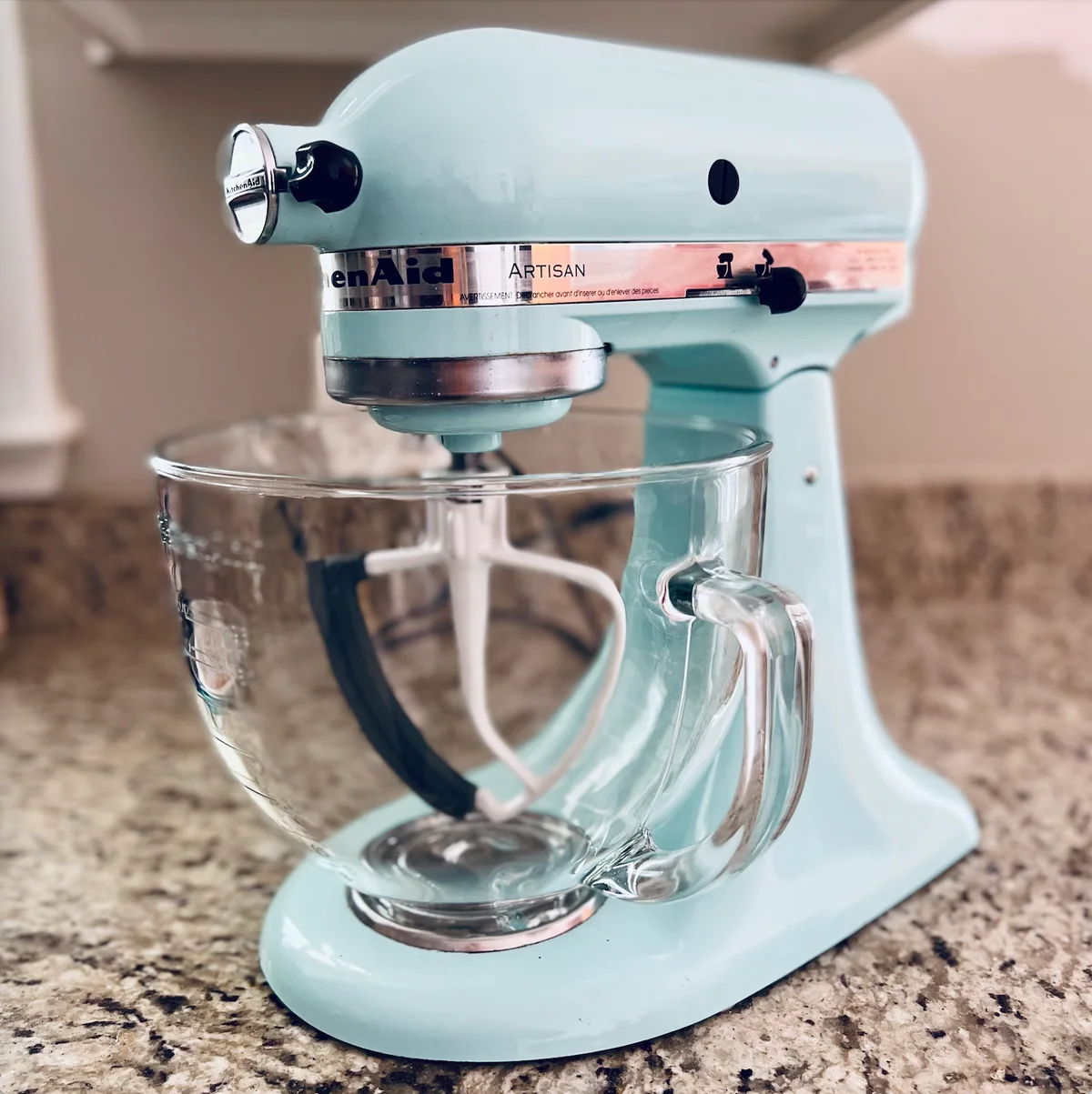 The KitchenAid stand mixer pictured here is indeed my own, and it has been well-loved and well-used - but it still looks the same as it did the day I got it! My Dad has had his for probably ten years longer than I've had mine (and he's a far more experienced bread aficionado than I am), and the same is true. I can't tell a difference between the day he unboxed his and today. I'm a big fan of the pasta attachment, and the ice cream mixing bowl is an absolute dream in the summertime when my third grader and I feel like getting crafty! (Between you and me, though, I've got my eye on the shredder attachments for a Mother's Day gift.) While I generally prefer the tilt-head design over the version with the crank that moves the bowl, I've heard strong arguments for both. I find the tilt-head easier to store because it's ever so slightly shorter and (in my humble experience) just as powerful. No matter which you prefer, though, this versatile little appliance more than earns its spot under time tested products we love.
