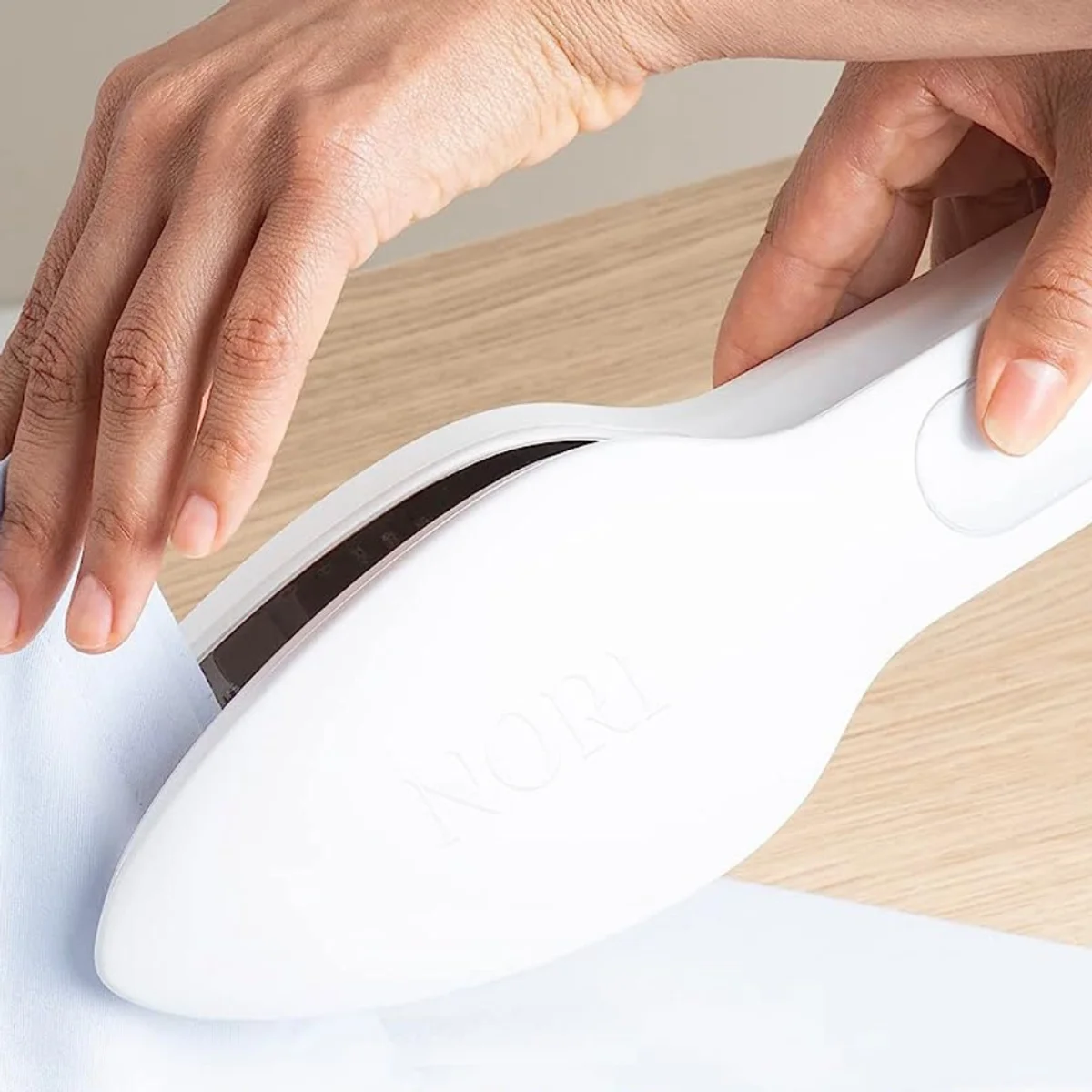 The NORI press iron is the best tool I've found to handle wrinkly clothing on the go. It is a two-in one hand-held iron and steamer device that uses a hand-held clamp to function to get out tough wrinkles. The best part is that you don't need an ironing board.