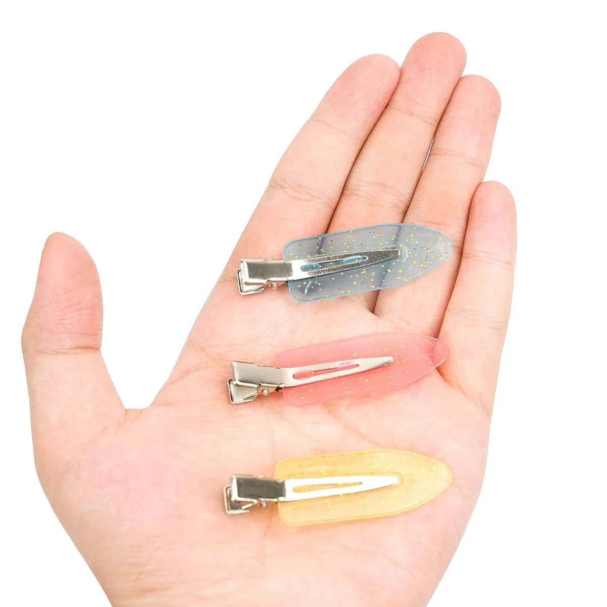 You know those celeb-getting-ready videos and how they always have a few flat clips in their hair? They're creaseless barrettes made to keep your hair off your face while you get ready. These sparkly barrettes keep the surface area (your face) unobstructed and don't mess up your hair. I use 'em to set my bangs post-shower!