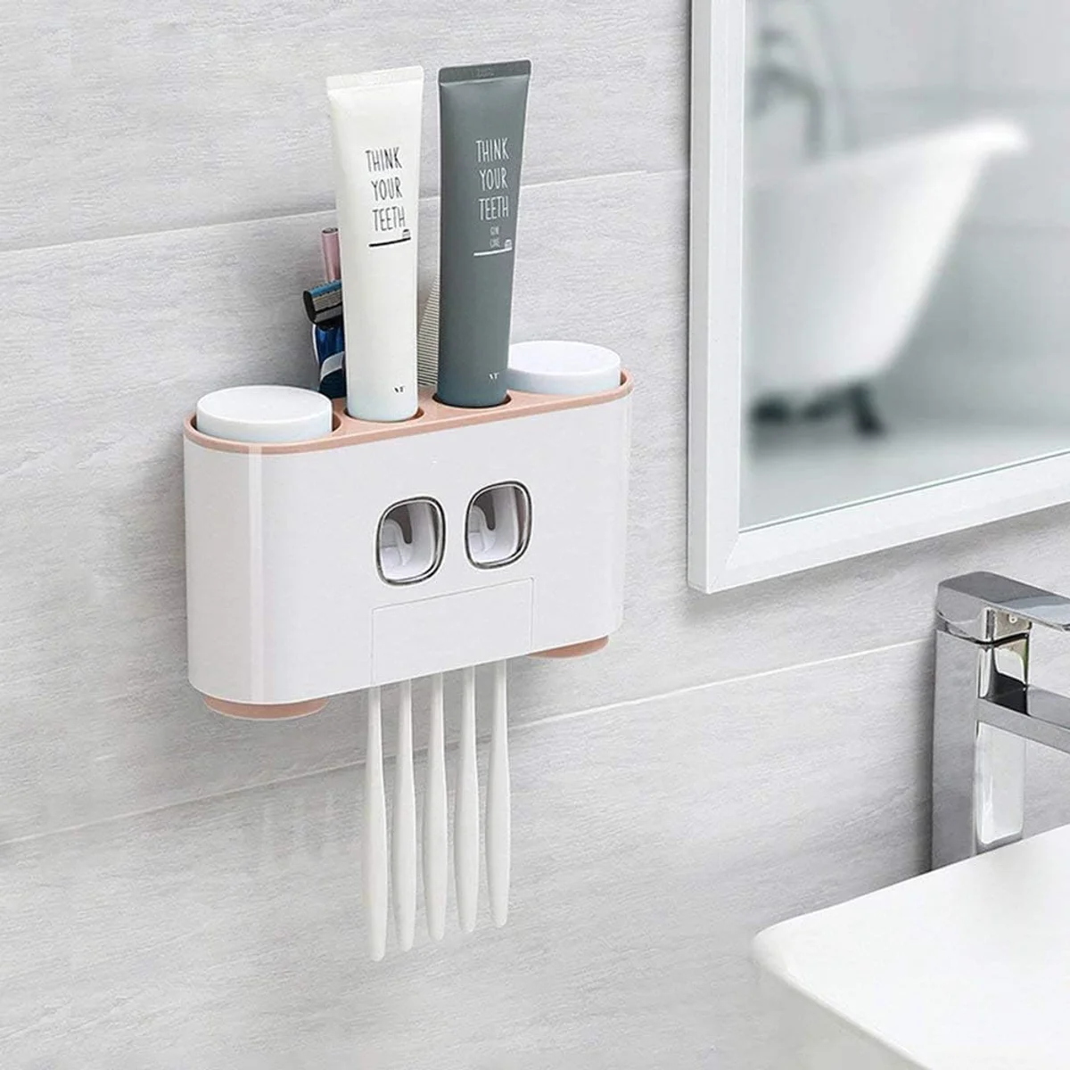 This brush holder/toothpaste dispenser adds an extra fancy hotel-style feel to your bathroom. The automatic dispenser gets rid of mess, with slots for mouthwash, toothpaste, and plenty of toothbrushes. The easy-to-install design doesn't require any tools to hang up either!