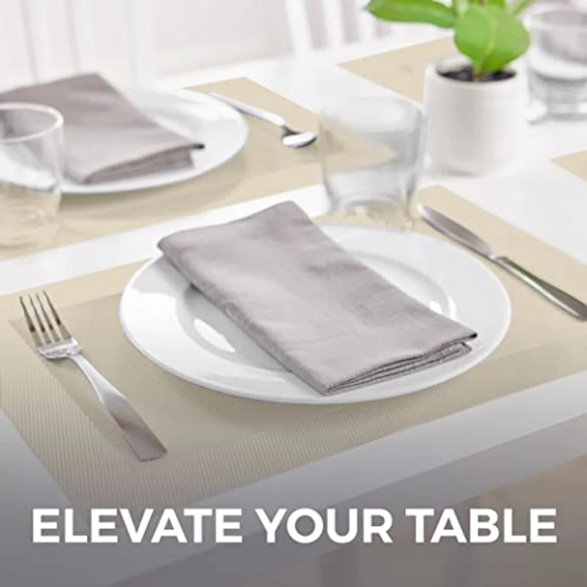 I like the look of placemats, but they're just another thing to add to the ever-growing laundry pile. Except these ones that look just like textile are wipeable for easy, fast cleaning! The woven vinyl is water- and stain-resistant and protects your table from heat while adding a touch of class. Choose from 10 popular colors to match your decor or holiday.