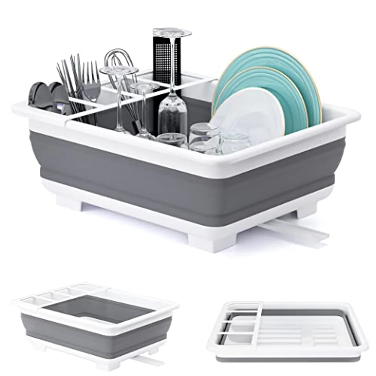 Yes, everyone has to dry their dishes somehow, but do we need to keep drying racks on constant display? Of course not, especially if you have this collapsible dish drying rack that easily stores away when the dishes are done! I also like to bring it on camping trips to keep things clean and tidy.