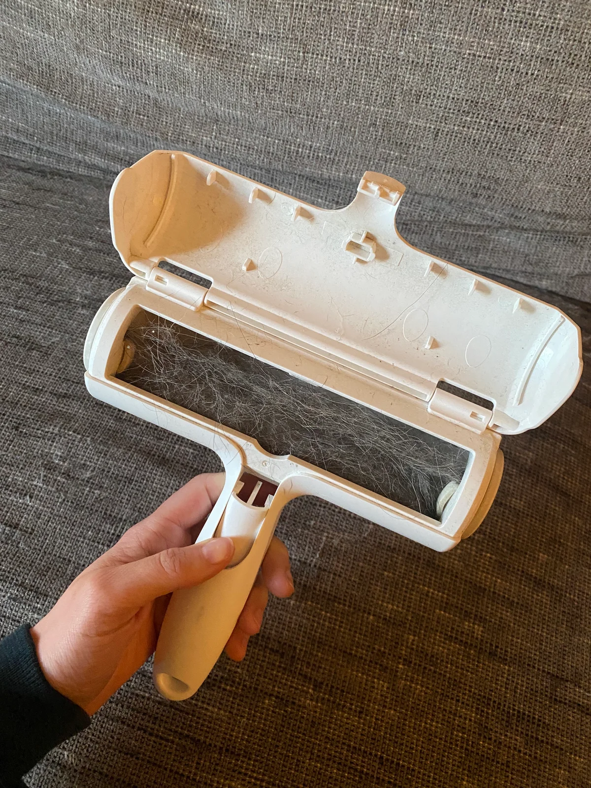 If you've got pets that shed, you need this ChomChom pet hair remover. Fun fact: we got a dog that specifically wasn't supposed to shed, but you can probably guess what happened. Whenever I need to de-fur a couch, chair, carpet, or my clothes, I grab this reusable roller that's super easy to clean out, too.