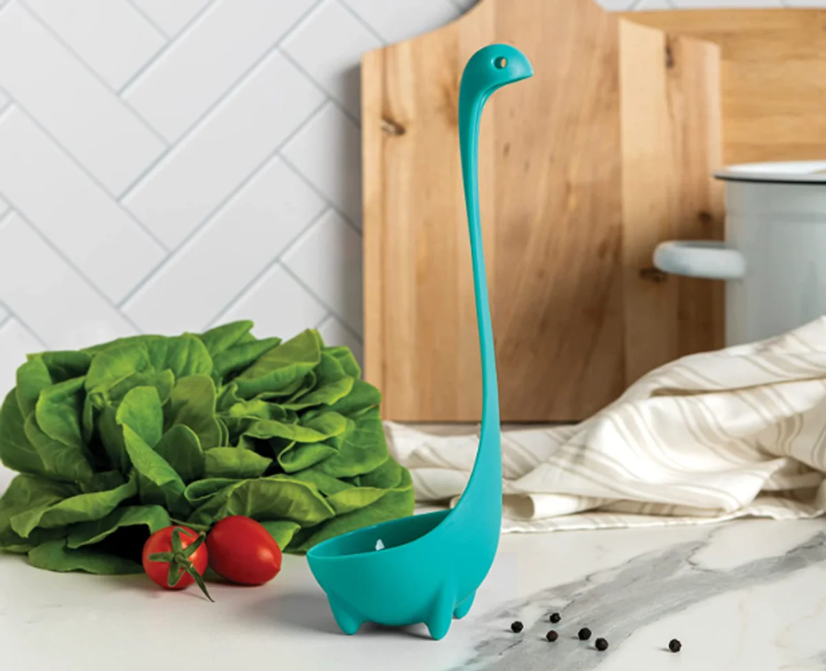 While I'm focused on clever kitchen gadgets, meet your new favorite ladle - Nessie. (And, yes, it's a play on the Loch Ness Monster.) Serve soup, stew, gravy, chili and more with this hilarious stand-up soup scoop.