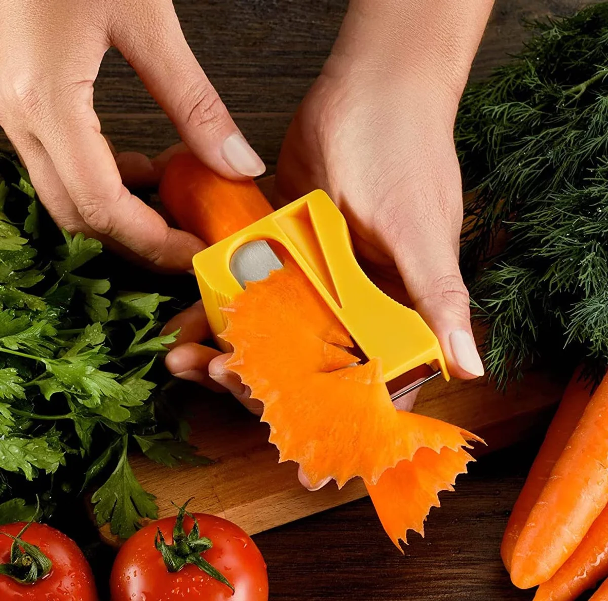 Not only will it spiralize your carrots (or other cylindrical veggies) into beautiful, shape-able ribbons, but the Karoto carrot sharpener also contains a razor-sharp peeler. Reveiwers tout how fun it is to use with kids, and how well it works on carrots, cucumbers, and the like.