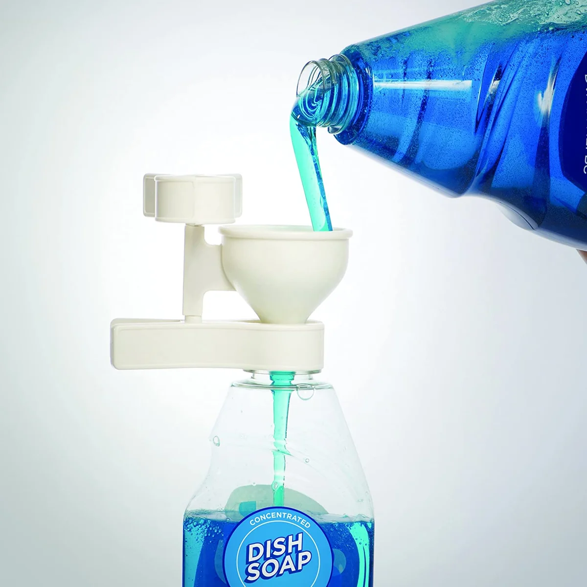 Trying to get the most of our warehouse club membership, we've been buying the ginormous bottles of dish soap, cooking oil, and whatever else comes in liquid form then transferring it to smaller bottles for easier storage and use. This Smart Funnel makes it simple and mess-free