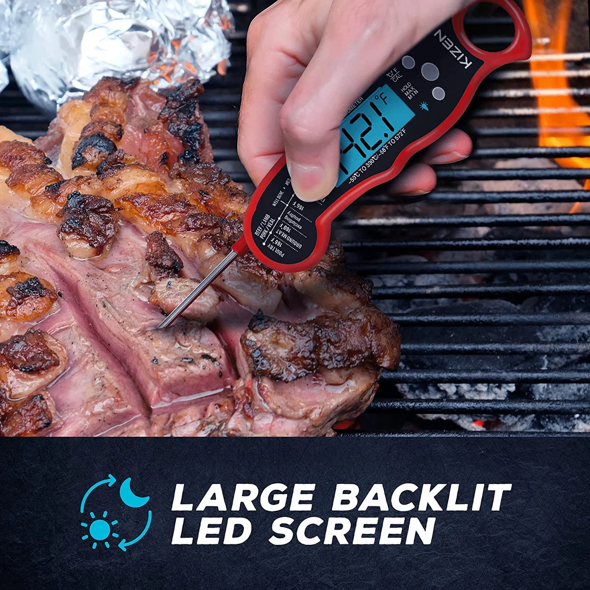 You're already working hard cooking a delicious dish together, so let's not make things any more difficult. This KIZEN brand digital meat and poultry thermometer can also be used to check baked goods or liquids. It's easy to read your food's temperature on the large LED screen and is great for use in the kitchen and outdoor grills. This thermometer has an auto-on and off feature and a temperature chart as a quick guide to reference typical meat temperatures.