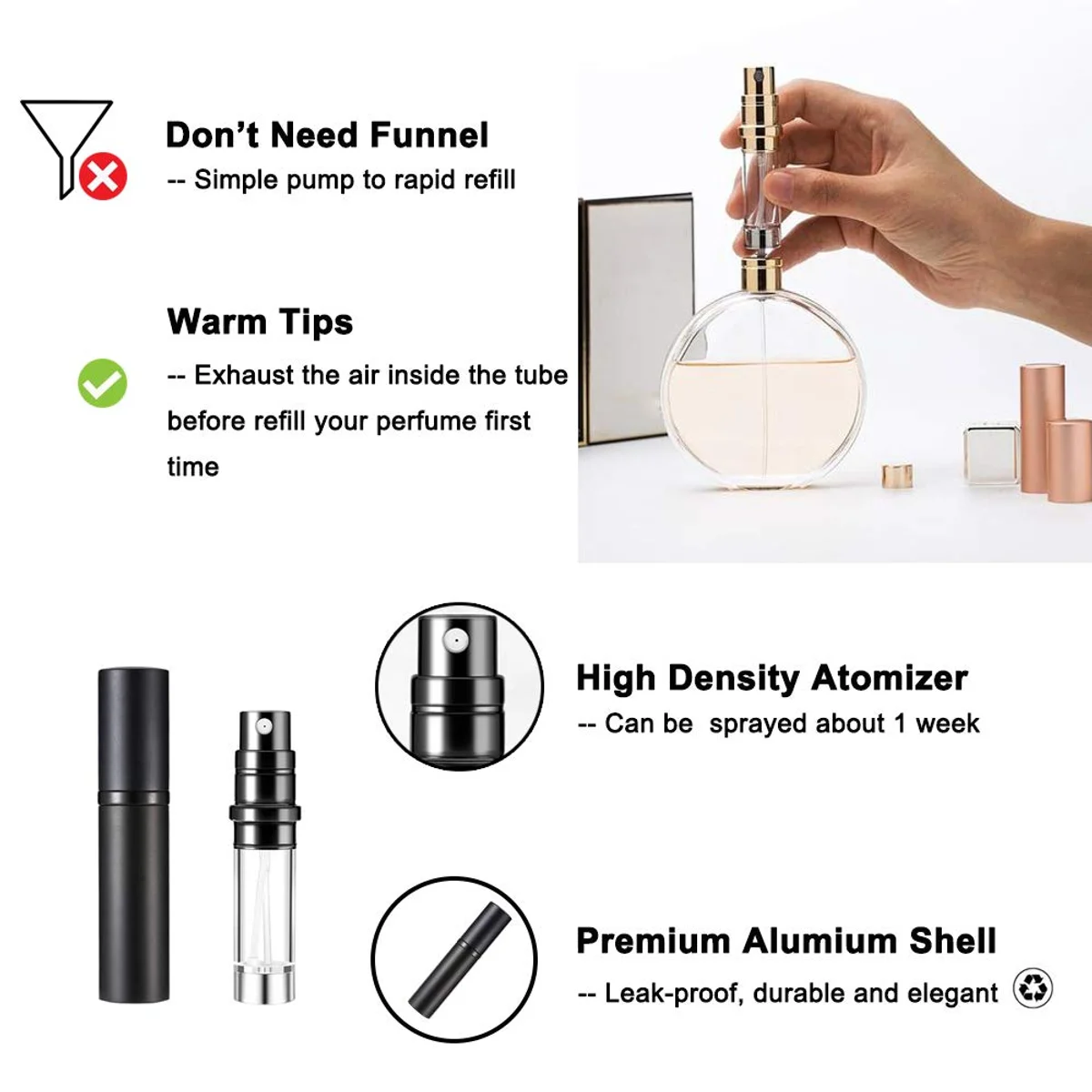 My husband and I always wanted to bring our favorite perfume and cologne on vacation, but we were naturally nervous and hesitant to pack a glass bottle for travel. I'm so glad that I found these refillable bottles that are travel and carry-on friendly. We've put this on planes and in our carry-on bags without leaks. We love being able to pack our favorite fragrances without risking the breaking of our original glass bottles.